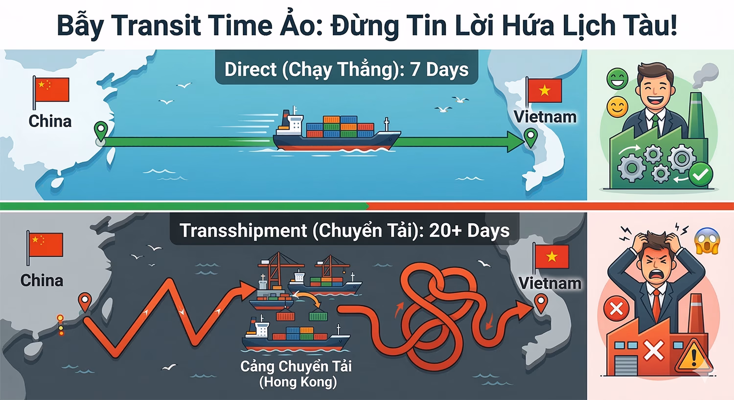 Posted inKiến thức Logistics Bẫy Transit Time “Ảo” & Tàu Chuyển Tải (Transshipment): Đừng Để Nhà Máy Đóng Cửa Vì Lời Hứa Lịch Tàu! Posted by By Trần Duy Thuận Tháng 3 12, 2026 Chào bạn, tôi là Trần Duy Thuận đây. Trong ngành Xuất Nhập Khẩu, có một kịch…