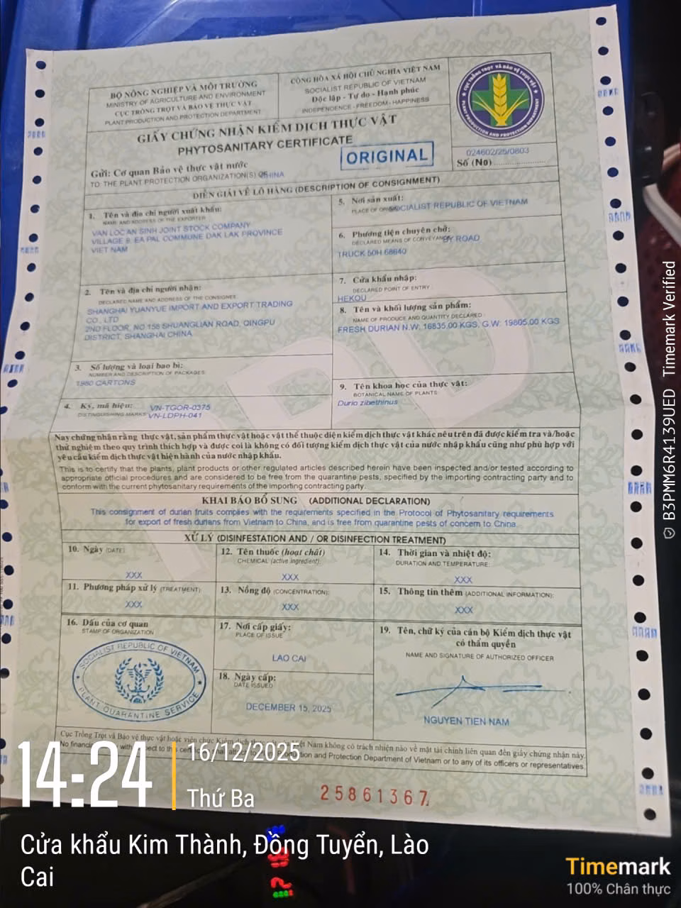 Chào bạn, tôi là Trần Duy Thuận đây. Bạn xuất khẩu một lô gạo hoặc đồ gỗ nội thất. Bạn đã thuê công ty đến phun thuốc xử lý mối mọt (Hun trùng) và cầm trong tay tờ chứng nhận Fumigation Certificate.